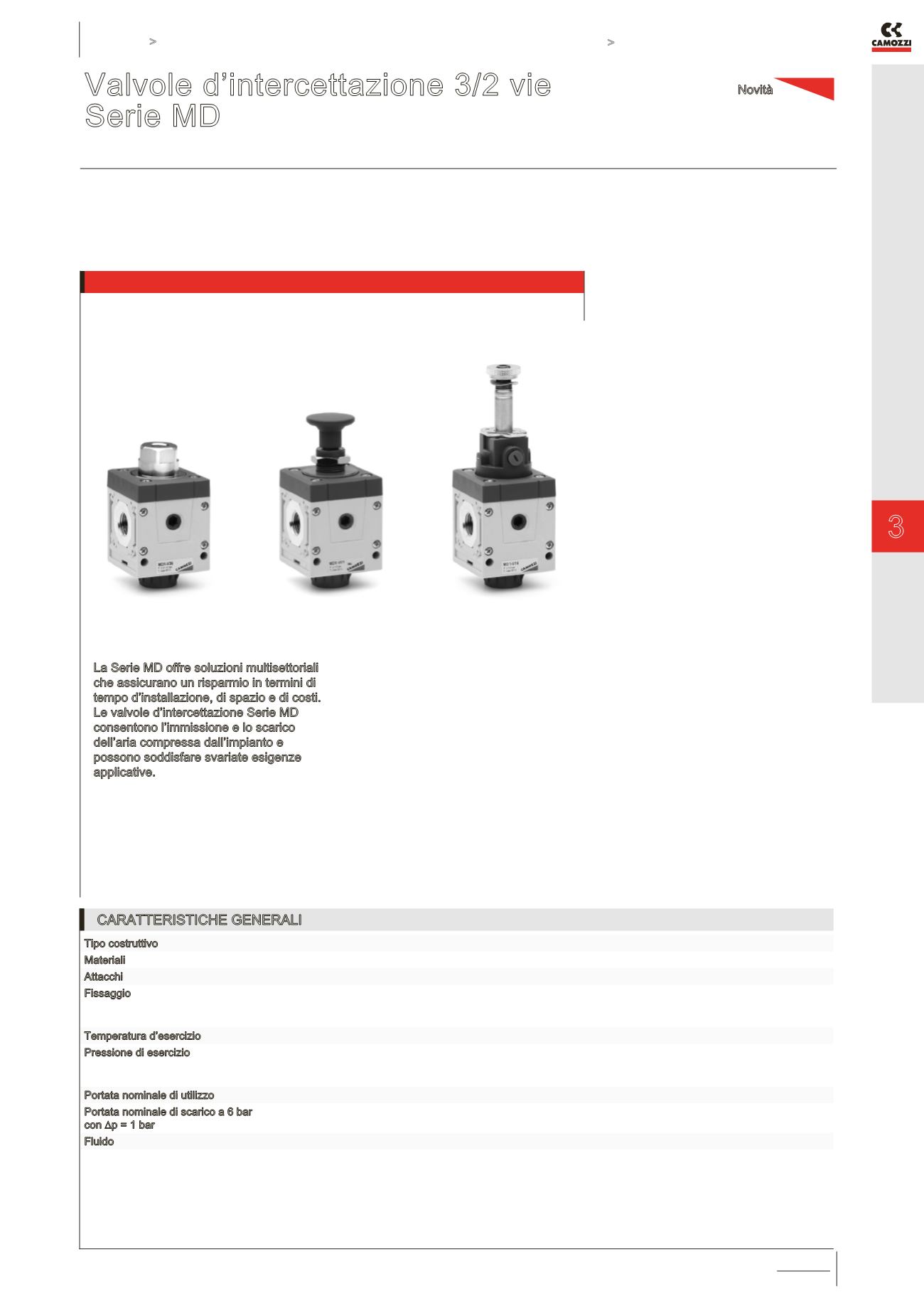 www.camozzi.com.Valvole intercettazione 3/2 vie Serie MD