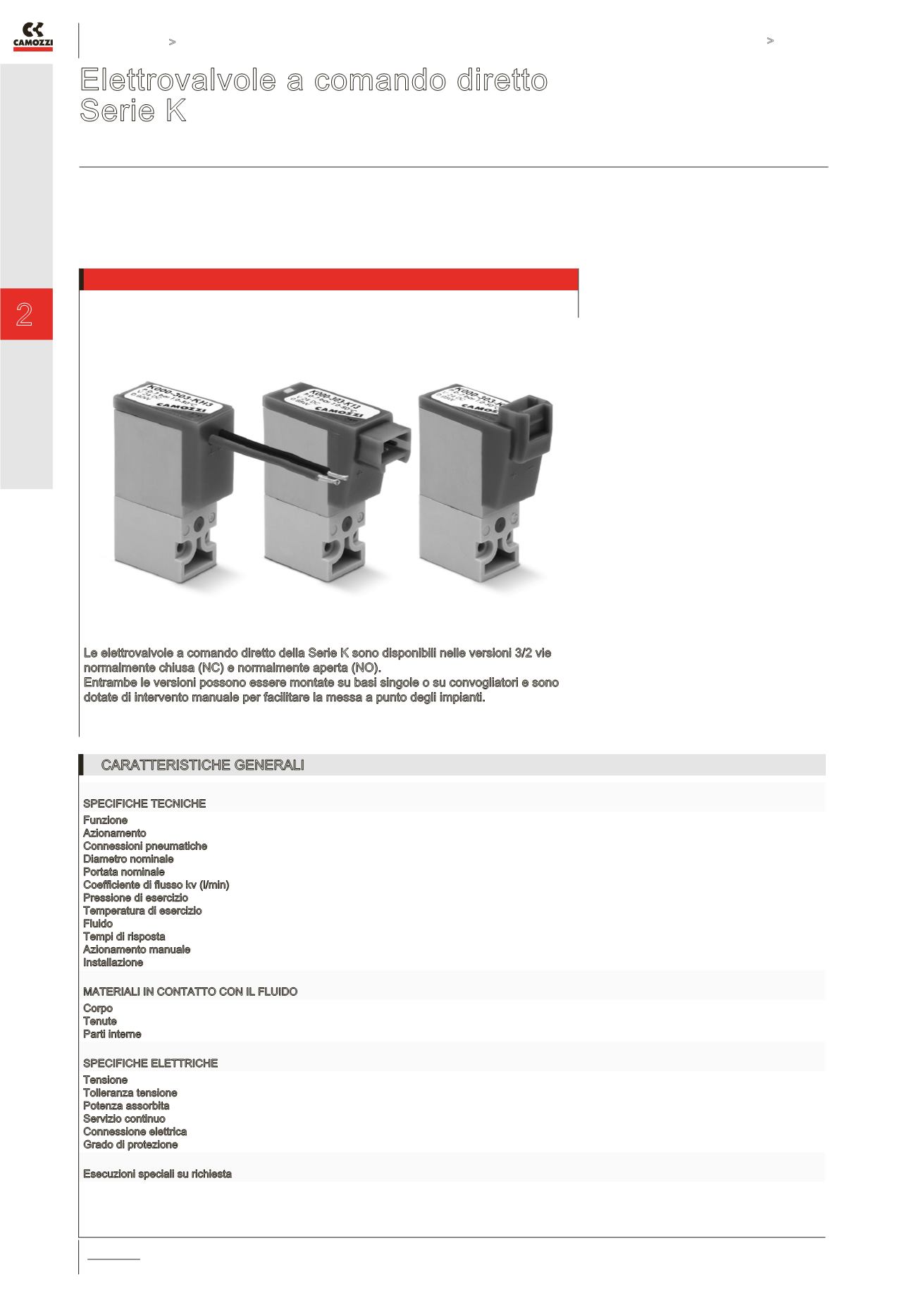 Le elettrovalvole a comando diretto della Serie K sono disponibili nelle versioni 3/2 vie
