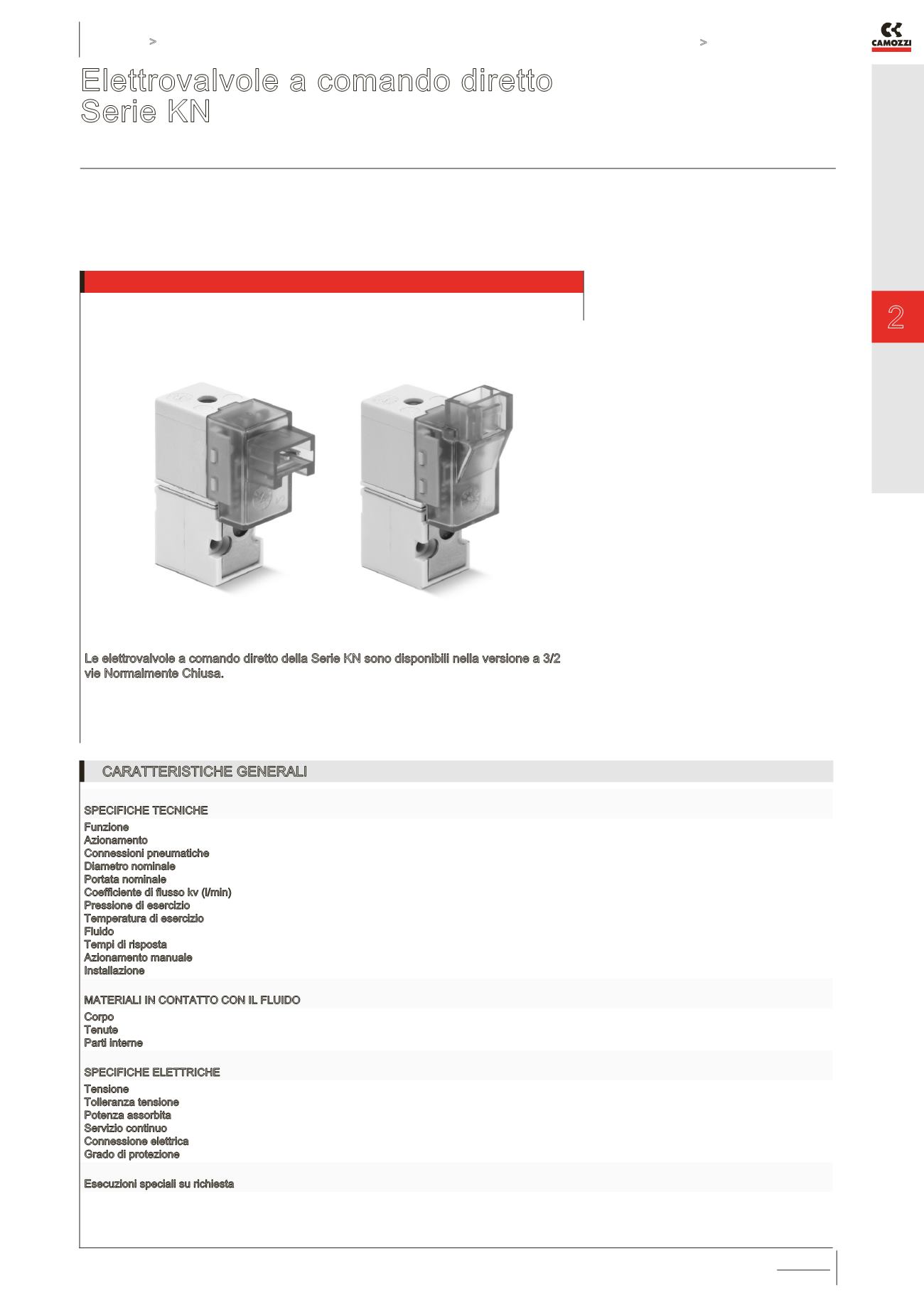 Le elettrovalvole a comando diretto della Serie KN sono disponibili nella versione a 3/2