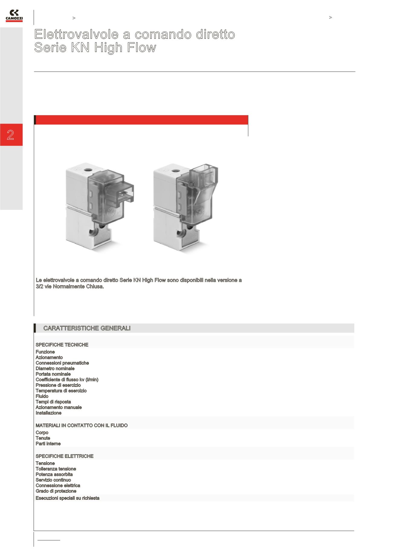 Le elettrovalvole a comando diretto Serie KN High Flow sono disponibili nella versione a