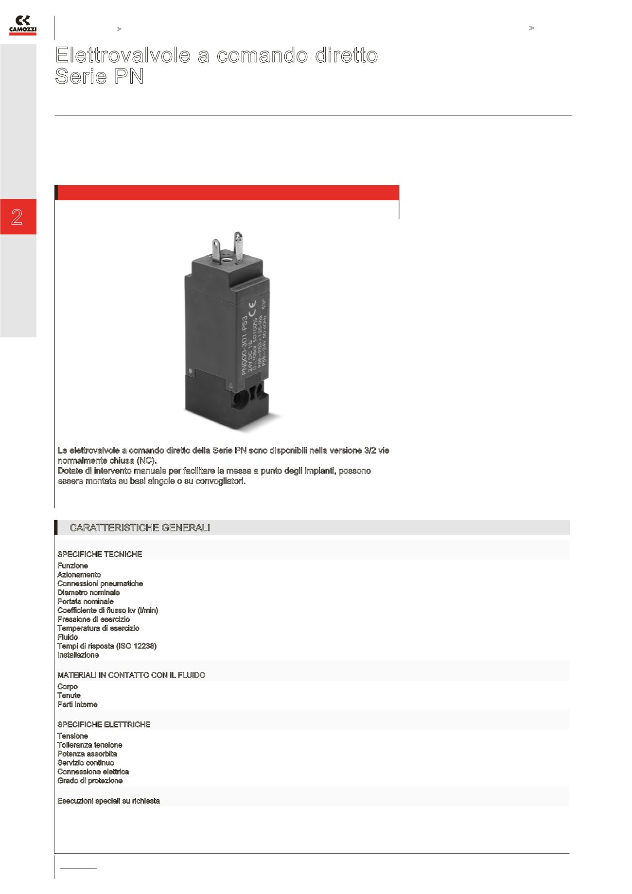 N.B.: Tutte le elettrovalvole della Serie PN
