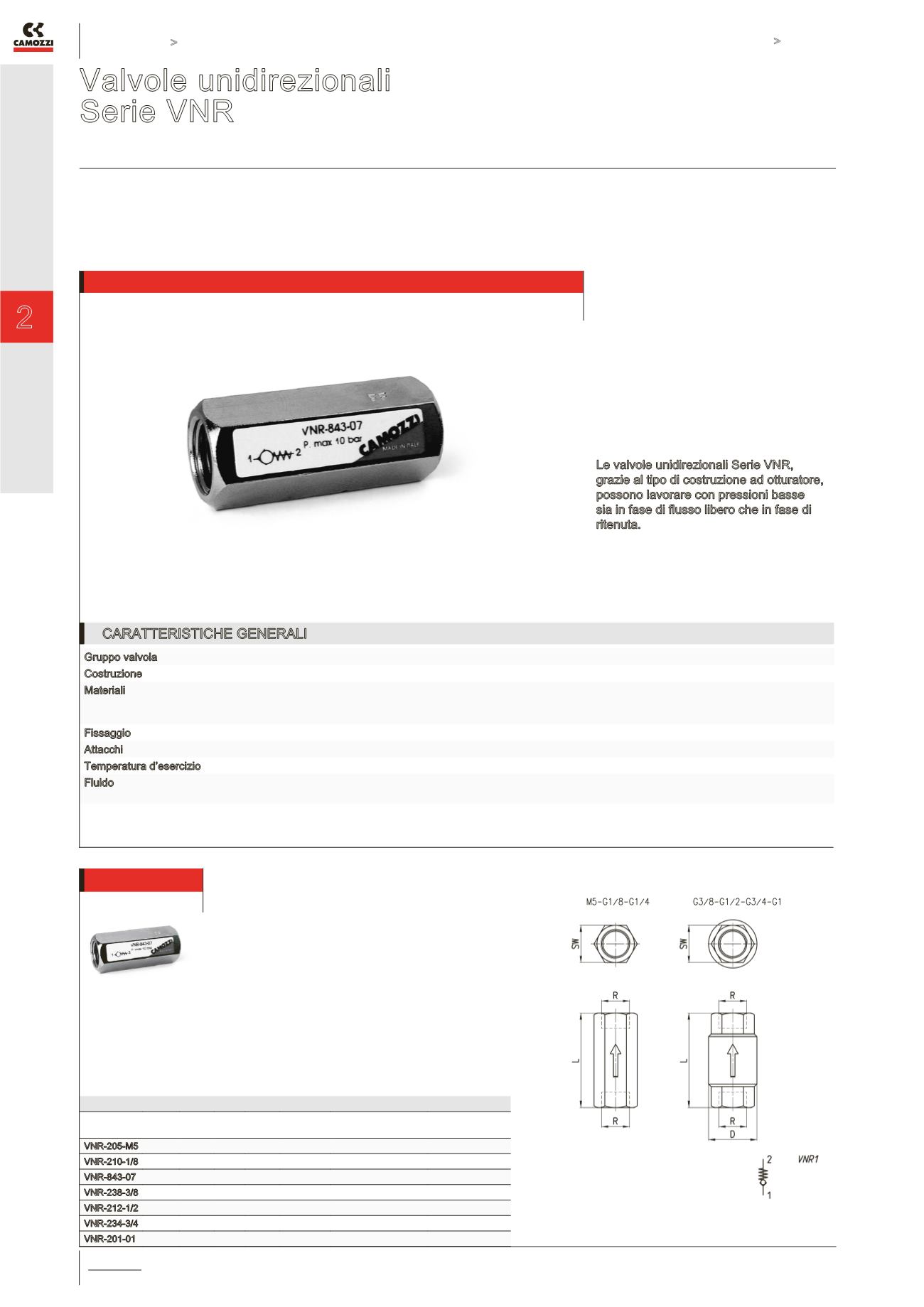 Valvole unidirezionali Serie VNR