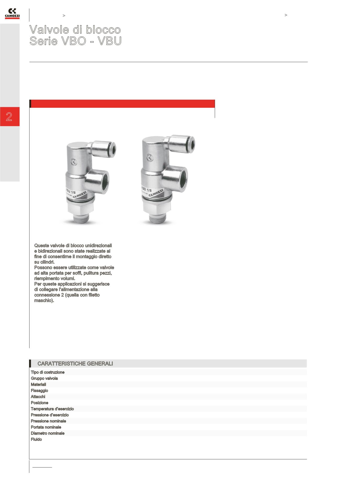 Pressione d’esercizio VBU: 0,3 ÷ 10 bar, VBO: 0 ÷ 10 bar