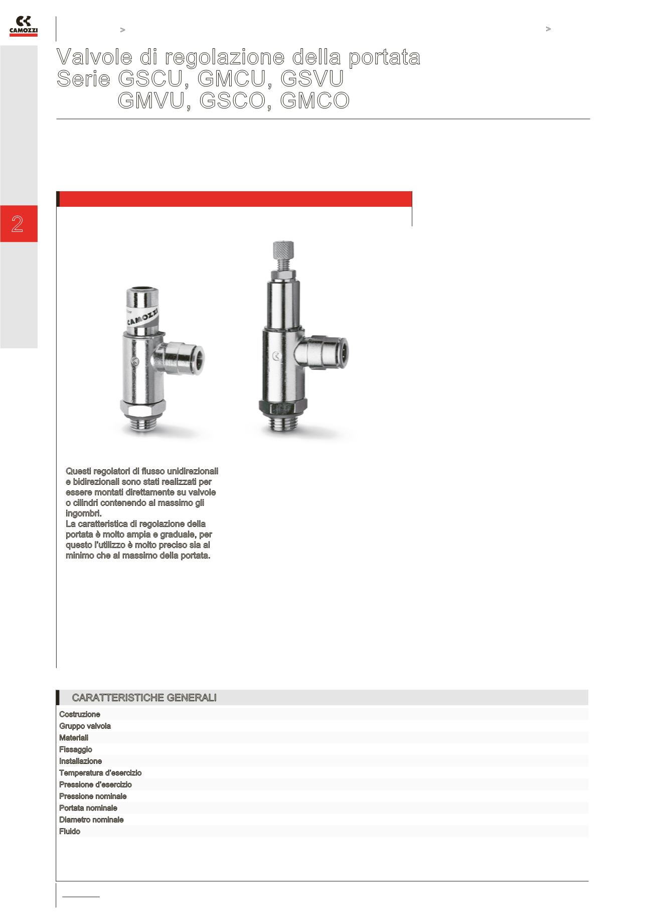 Valvole Serie GSCU, GMCU, GSCO, GMCO