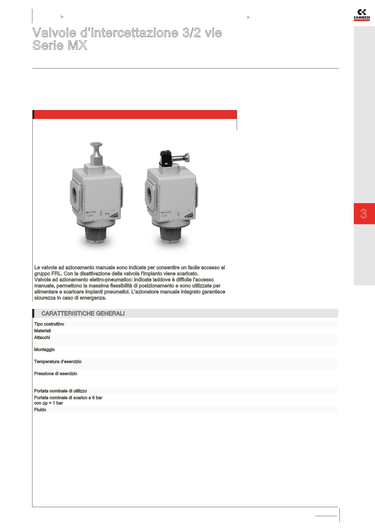 www.camozzi.com.Valvole intercettazione 3/2 vie Serie MX