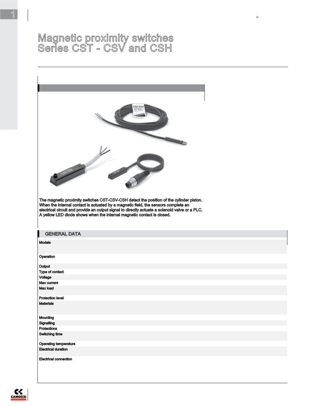The magnetic proximity switches CST-CSV-CSH detect the position of the cylinder piston.