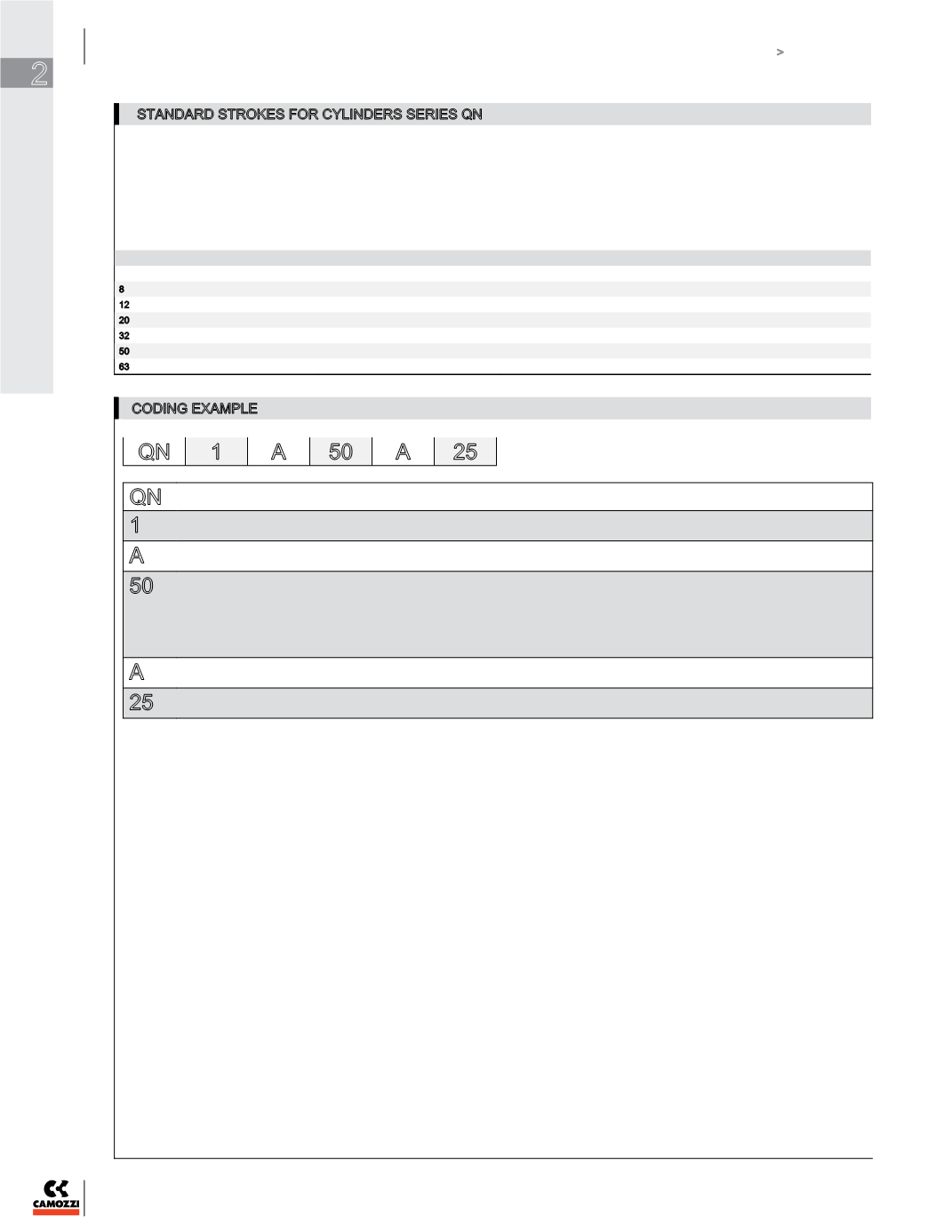 STANDARD STROKES FOR CYLINDERS SERIES QN
