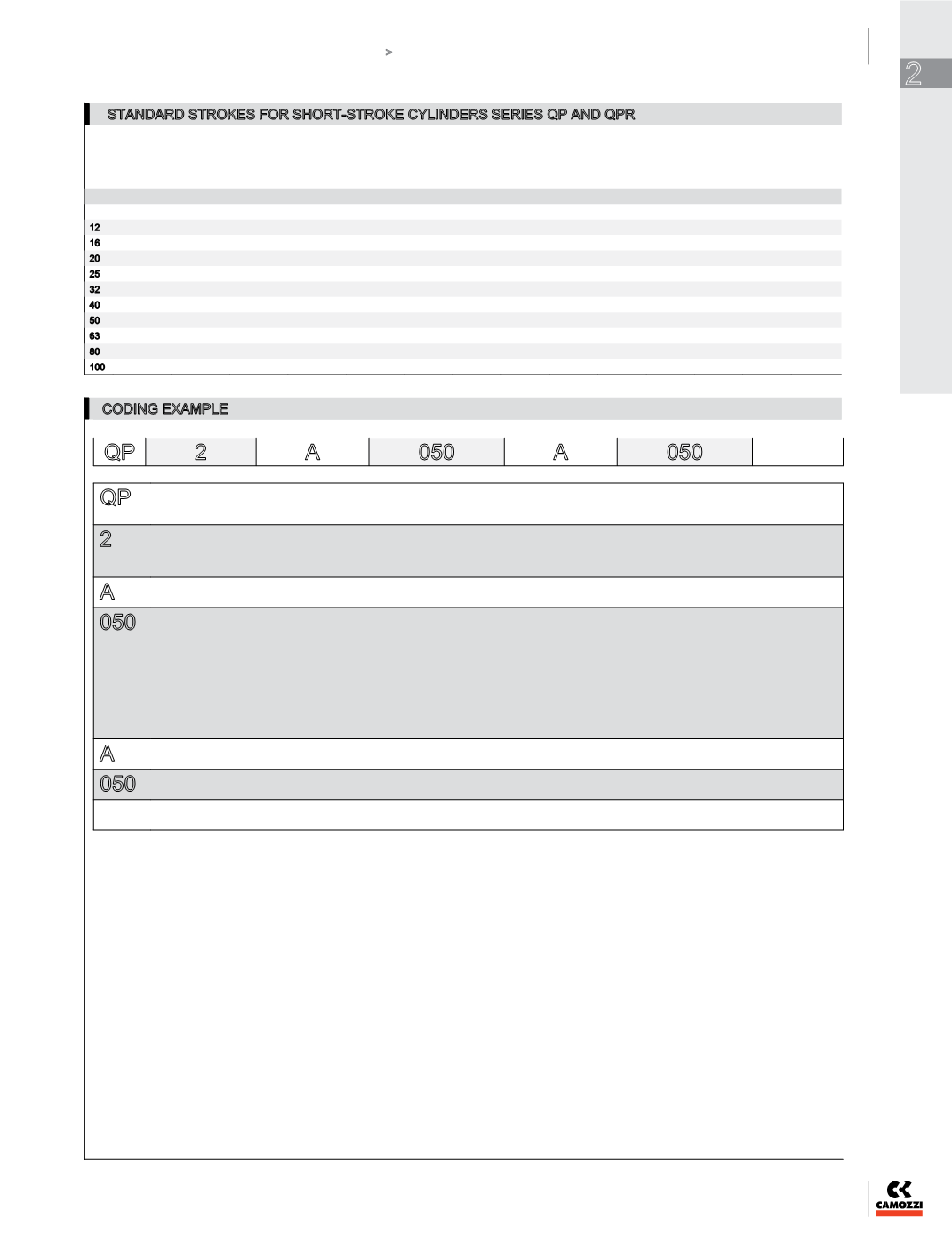 STANDARD STROKES FOR SHORT-STROKE CYLINDERS SERIES QP AND QPR