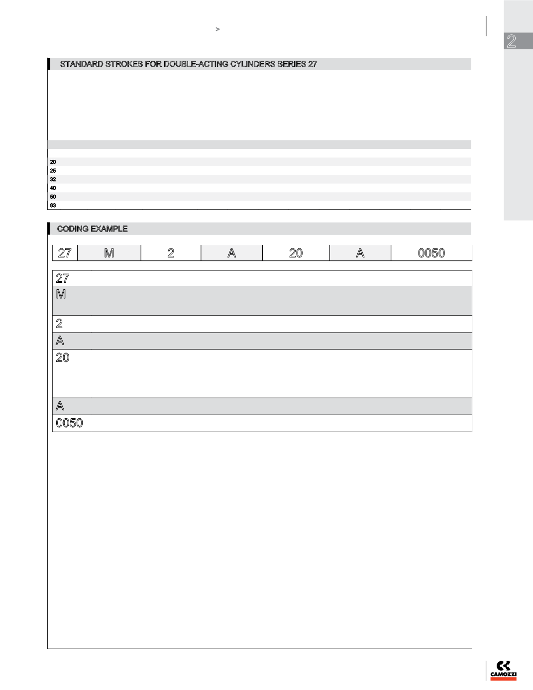 STANDARD STROKES FOR DOUBLE-ACTING CYLINDERS SERIES 27
