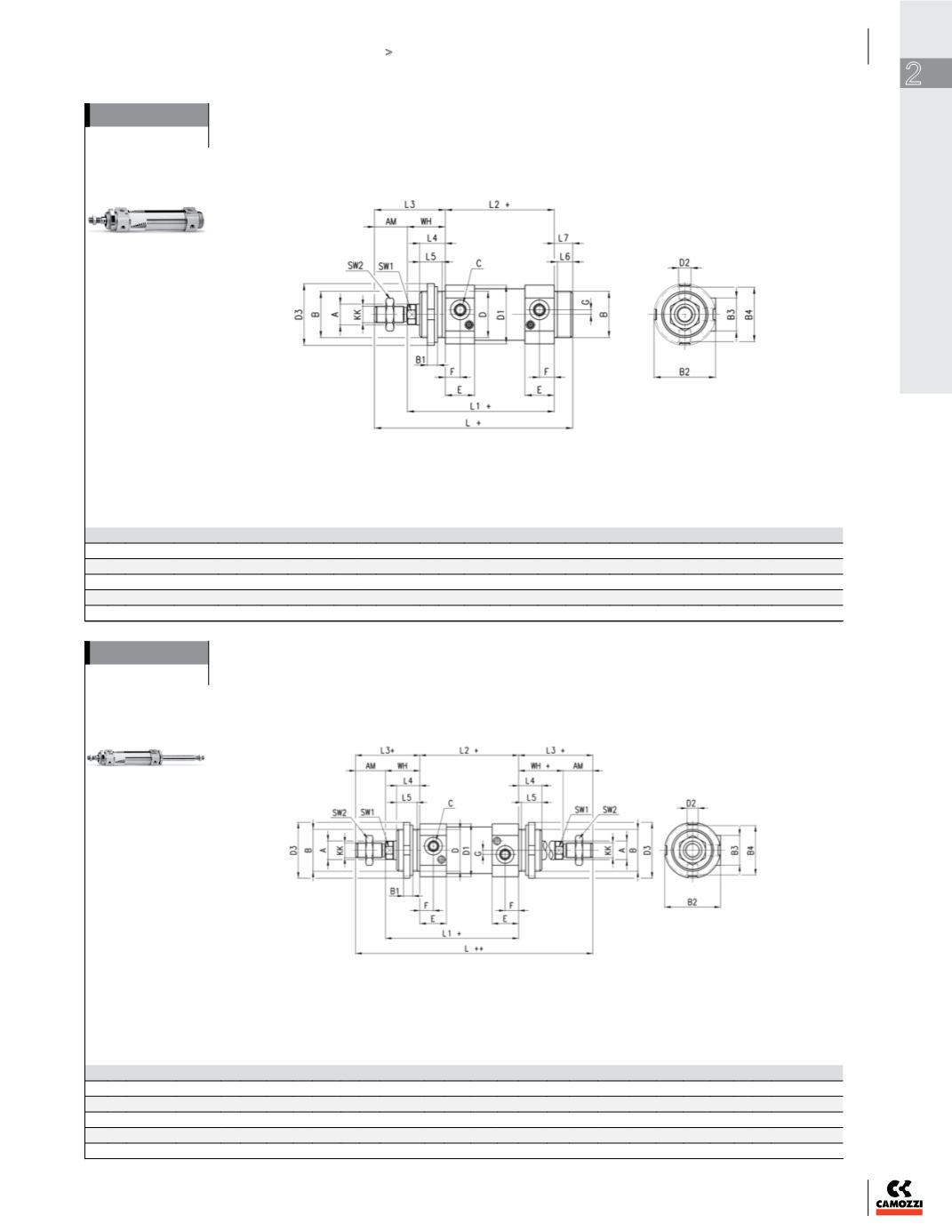 N.B. : the single-acting cylinders, sizes L, L1 and L2 are increased by 25 mm.