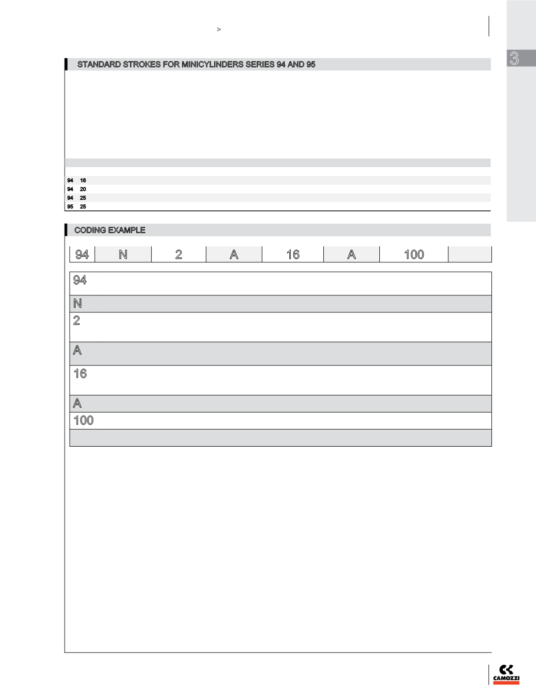 STANDARD STROKES FOR MINICYLINDERS SERIES 94 AND 95