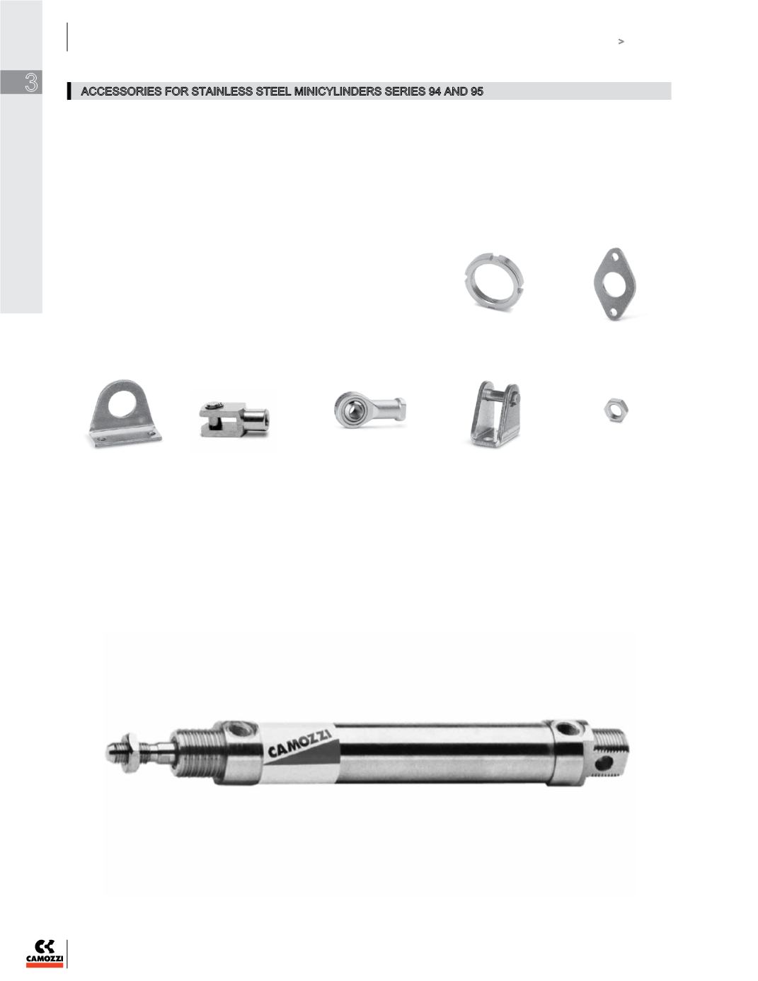 ACCESSORIES FOR STAINLESS STEEL MINICYLINDERS SERIES 94 AND 95