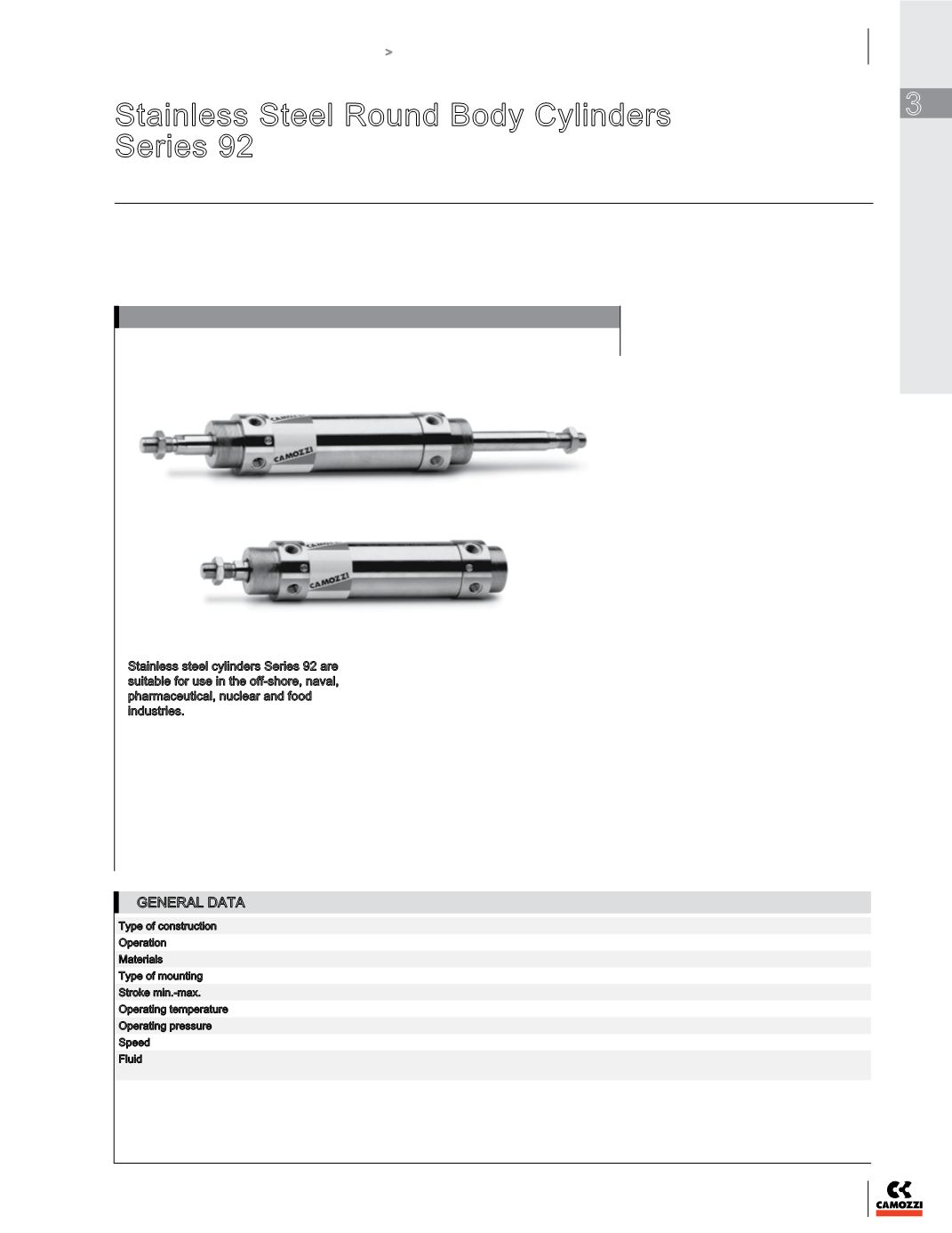 Stainless steel cylinders Series 92 are