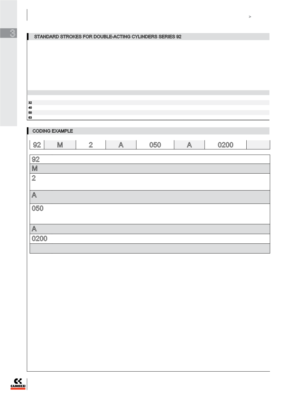STANDARD STROKES FOR DOUBLE-ACTING CYLINDERS SERIES 92