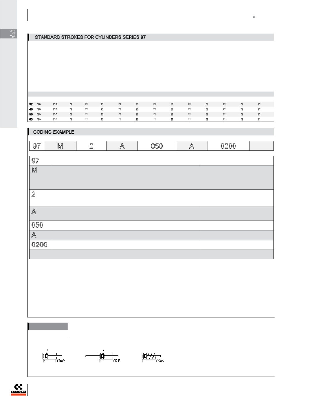 STANDARD STROKES FOR CYLINDERS SERIES 97