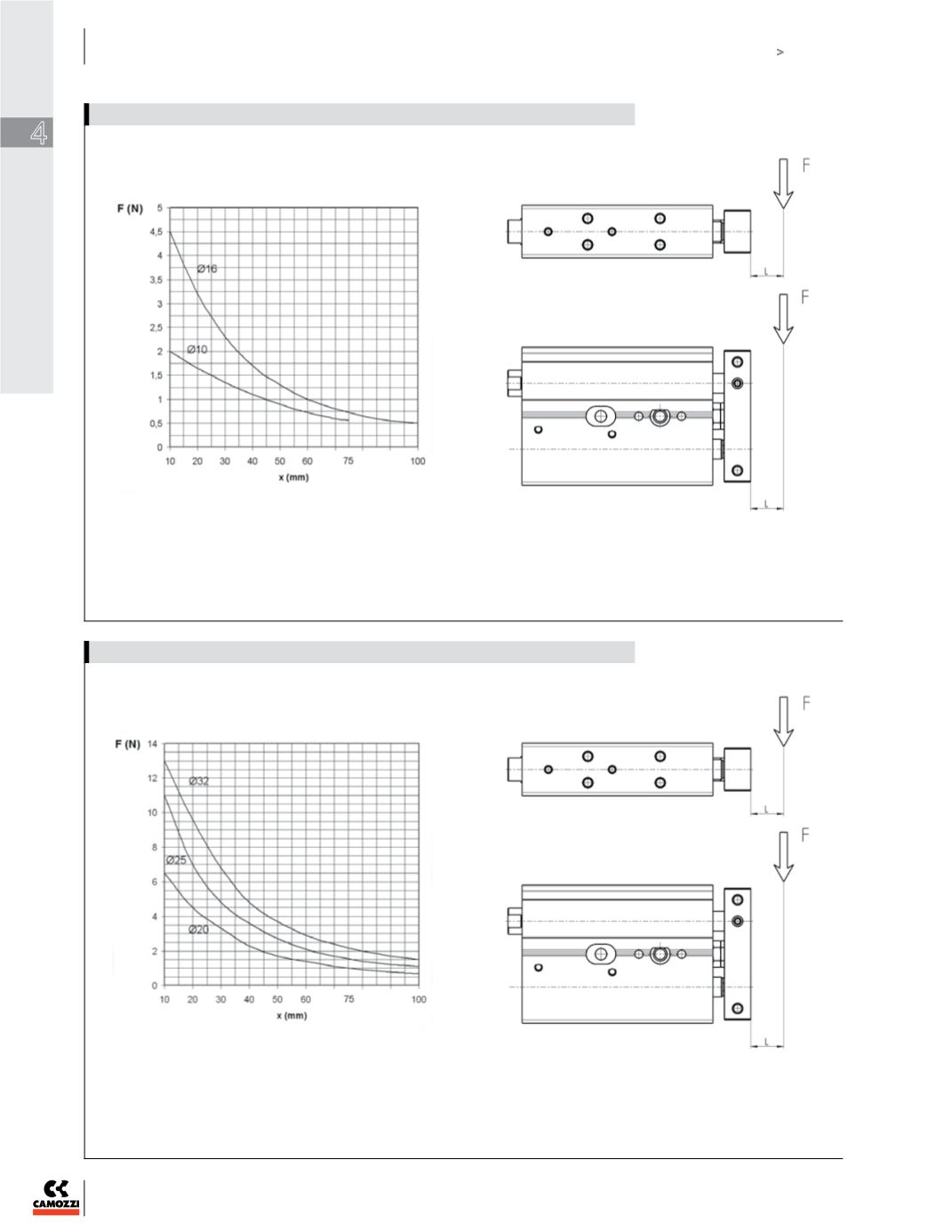 DIAGRAM MAX APPLICABLE LOADS DEPENDING ON THE STROKE ( X )