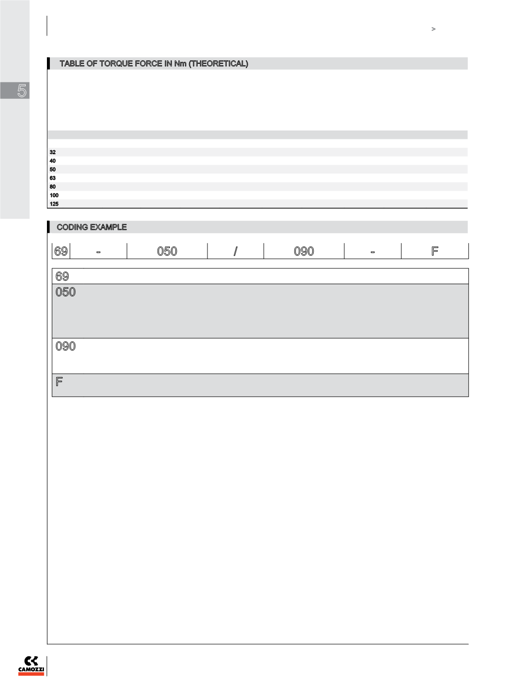 TABLE OF TORQUE FORCE IN Nm (THEORETICAL)