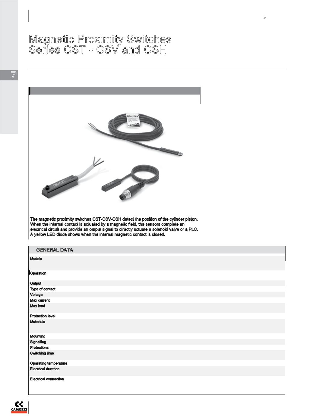 The magnetic proximity switches CST-CSV-CSH detect the position of the cylinder piston.